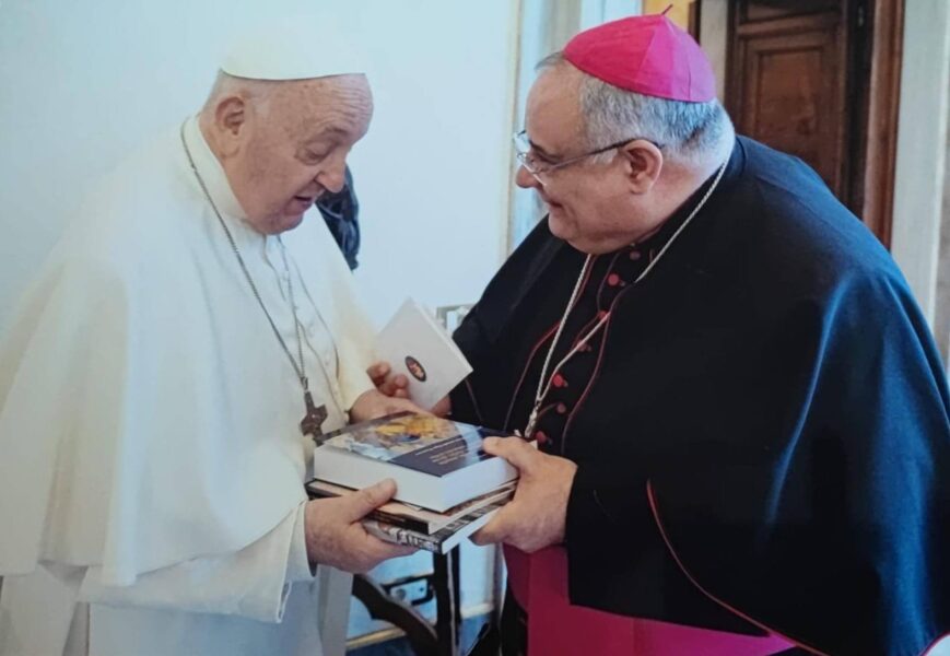 Mons. Rumeo ha altresì raccontato al Papa della ricostruzione della Cattedrale, dopo il rovinoso crollo della Cupola del 1996, icona di una Chiesa che con l’aiuto di Dio e la buona volontà del suo popolo, ha saputo rimettersi in piedi.